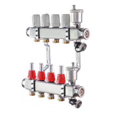 Коллекторная группа из нержавеющей стали, предназначены для распределения теплоносителя в системе отопления водяного теплого пола.